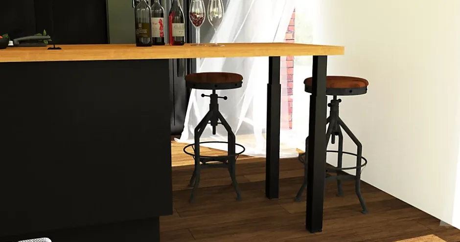 Pied de plan de travail carré en acier époxy noir Cime Zoom H. 70 / 110 cm