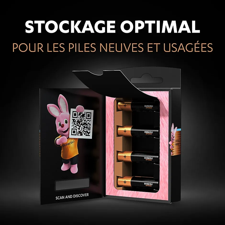 - EMBALLAGE INTELLIGENT : L’emballage Duracell Optimum permet de stocker les piles neuves et usagées et de les ramener en sécurité jusqu’au bornes de recyclage.