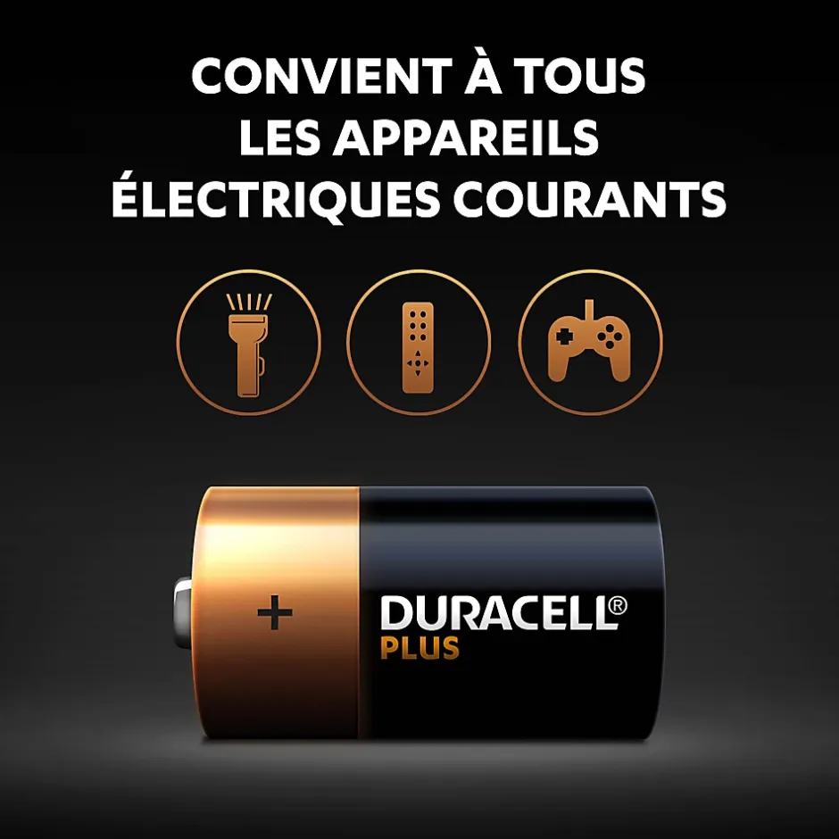 Duracell vous propose une large vaste gamme de piles pour les appareils électroniques qui nécessitent une alimentation fiable. Les piles C Duracell Plus sont des piles alcalines idéales pour alimenter tous vos appareils. La pile alcaline C Duracell Plus offre une durée de vie garantie à 100 %* (*garantie commerciale comparée à la durée moyenne minimum dans les tests standards IEC 2015 pour les piles de format C. Les résultats peuvent varier suivant l’appareil ou l’utilisation (site web IEC)). Les piles Duracell inutilisées peuvent conserver toute leur énergie pendant jusqu’à 10 ans dans leur emballage et dans des conditions normales de stockage. Duracell fut même la première pile à être allée sur la lune en participant à la mission Apollo 11 en 1969.