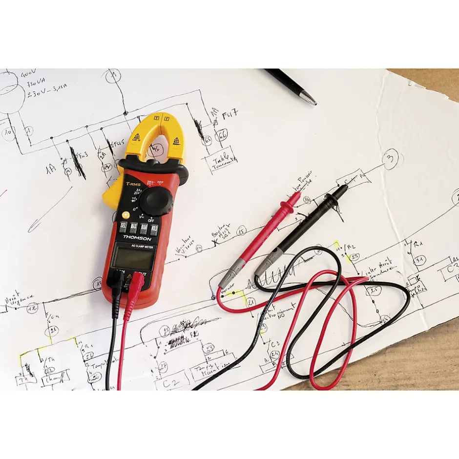 Caractéristiques de la pince ampèremétrique autocalibrée 6 fonctions CAT III 600V – Thomson :Modèle : pince ampèremétrique autocalibréeÉcran LCD avec rétroéclairage pour une visibilité optimaleFonction Hold pour maintenir la mesure sans interruptionIndicateur de batterie faible pour signaler l’autonomie restanteAlimentation : 3 piles AAA 1,5V fourniesAccessoires inclus : pointes de test et pochette de transportConvient pour des mesures en toute sécurité sur des installations électriquesConforme aux normes CE6 fonctions :Tension continue jusqu’à 600VTension alternative jusqu’à 600VCourant alternatif jusqu’à 600ARésistance jusqu’à 200M ohmsTest de diodeTest de continuitéLa pince ampèremétrique autocalibrée est un outil indispensable pour les professionnels qui ont besoin de mesures précises et sécurisées sur des installations électriquesSon écran LCD avec rétroéclairage permet une lecture claire, même dans des environnements à faible luminosité. La fonction Hold est particulièrement pratique pour maintenir la mesure sans l’interrompre, et l’indicateur de batterie faible vous avertit quand il est temps de remplacer les piles. Cette pince est alimentée par 3 piles AAA 1,5V fournies et inclut des pointes