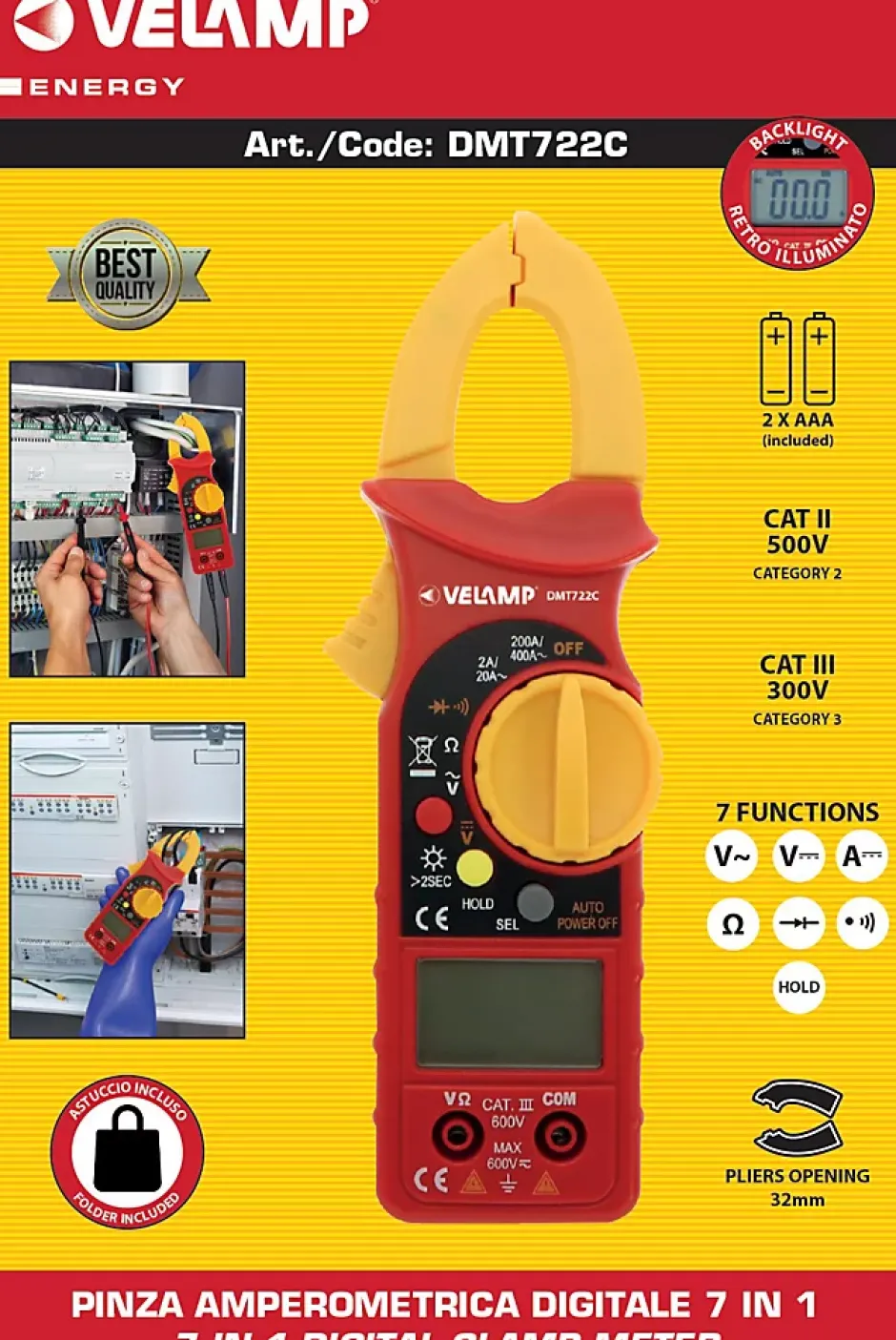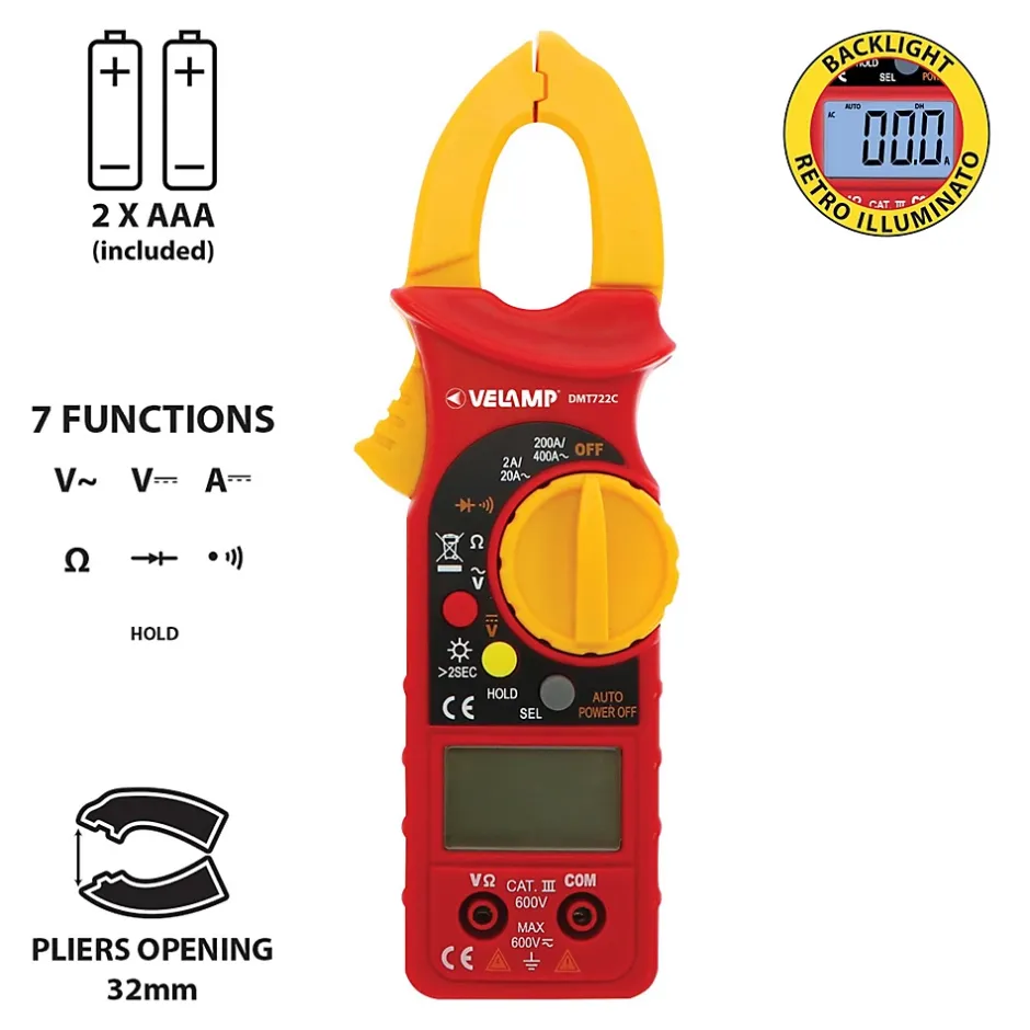 CAT III / 300A : Mesure du courant CAT III 300V AC/DC jusqu’à 400A sans débrancher le câble. Ouverture de la pince ampèremétrique 32 mm. Parfaitement adapté à l’entretien des machines, dans les armoires électriques et également à la mesure de courants élevés dans les systèmes électriques des véhicules et camions… Avec la plage de mesure de tension étendue jusqu’à 300 V, vous pouvez effectuer des tâches professionnelles de manière fiable et sûre. Fonctions du multimètre : mesure la tension alternative et la tension continue, l’intensité du courant alternatif, le test de diode, la continuité, la résistance avec sélection automatique de la plage. Écran rétroéclairé pour un plus grand confort de lecture des données. Garantie de sécurité : norme de sécurité IEC 61010-1, CAT III 600 V. Double isolation. Certificat délivré par SGS. Accessoires inclus : étui, 2 pointes de test, 2 piles AAA
