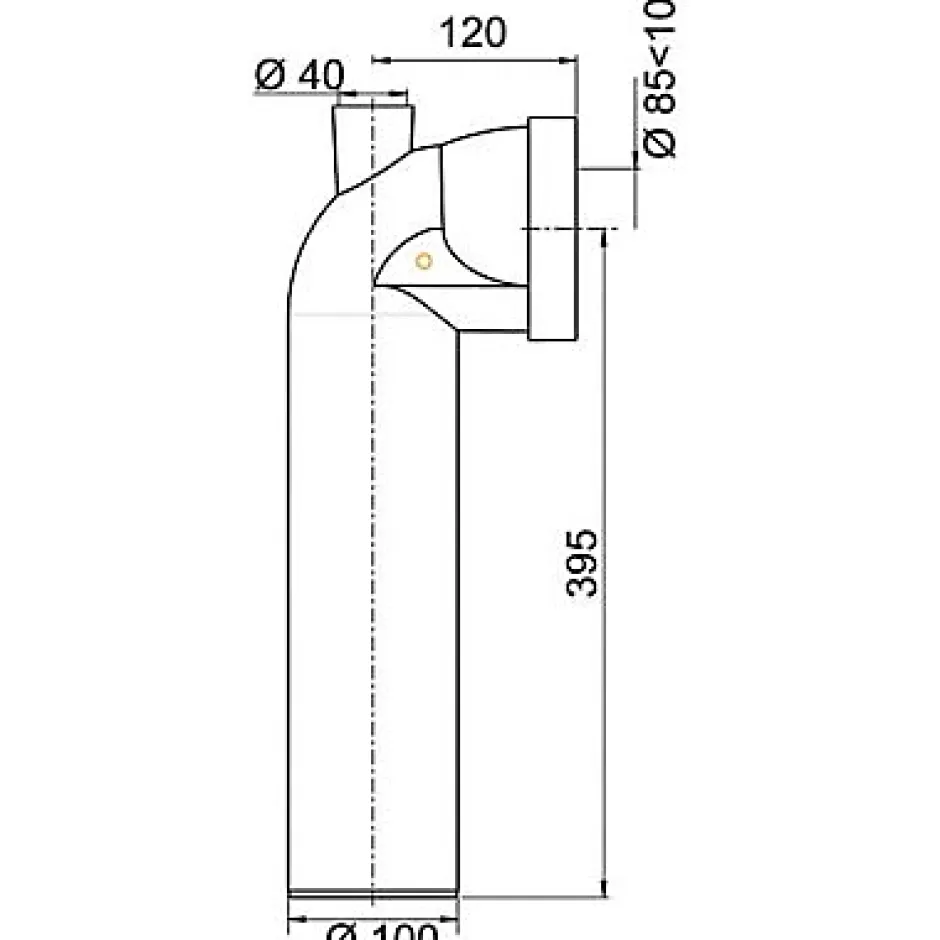 Pipe coudée 90° à embout lisse, longue, 100mm, 395mm avec piquage