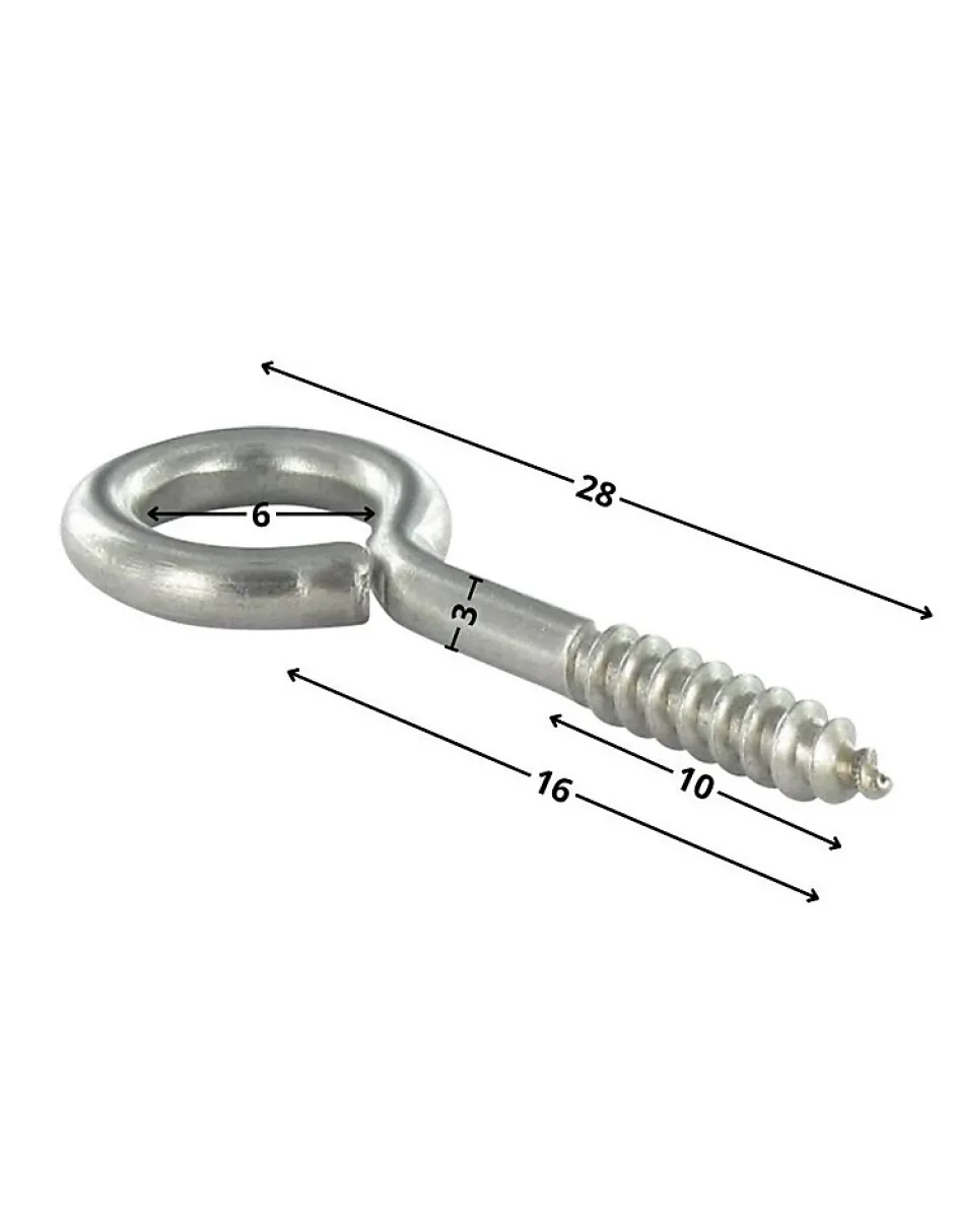 Piton Bois 3X16 Filetée sur 10 Longueur total 28 Oeil 6 Inox A2Diametre = 3, Longueur = 16, Matiere = A2, Norme = NFE 25-609,VS0120, Famille De Produits = PitonnerieAutre références : 3604880103881 1V07VIS19929 3663072170773