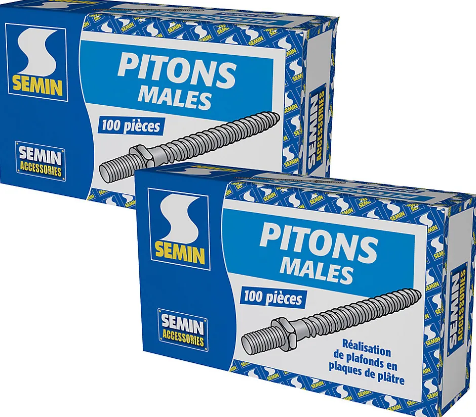 Le piton mâle permet la fixation d’un cavalier pivot en faux plafond.Il est utilisé pour la rénovation de plafond.Ce pack contient :- 2 boites de pitons mâles (200)CARACTÉRISTIQUES TECHNIQUESHauteur : 10 mmLongueur : 77 mmLargeur : 10 mmPoids : 0,013 kgCOMPOSITIONAcier zingué.