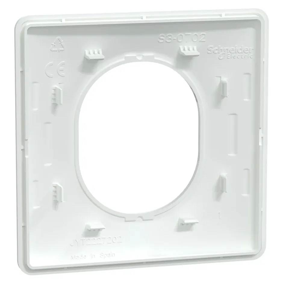 Ovalis – Plaque de finition 1 poste – blanc Plaque de finition Schneider Electric de la gamme Ovalis. Cette plaque de couleur blanche est munie de 8 crans de fixation. Compatible avec tous les éléments Ovalis, elle leur donne un aspect fini en toute discrétion. Produit pour 1 poste pour compléter un interrupteur, une prise, un variateur… Installation facile par clipsage sur un un boîtier fixé au mur. Dimensions 85 x 85 x 10 mm. Certifiée NF, cette plaque est protégée contre l’eau et la poussière (IP21) et contre l’usure mécanique (IK04). Elle respecte les normes EN 60669-1, NF C 61-314 et les directives UNE 20315-1-1 et 2006/95/EEC. Avec ses lignes élancées et ses formes uniques, la gamme Ovalis s’adapte aux intérieurs modernes ou classiques en apportant une touche contemporaine.