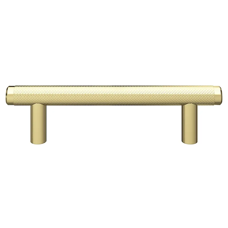 Poignée de meuble en T GoodHome Irus acier effet laiton satin doré l.136mm x l.12mm x H. 35mm entraxe 96mm