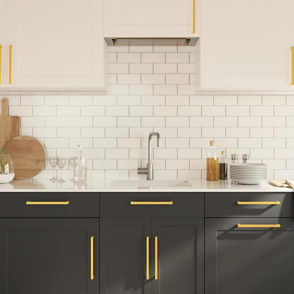 - Finition dorée intemporelle anti-traces, vis découpables pour s’adapter à différentes épaisseurs, conception tube carré, visserie incluse.