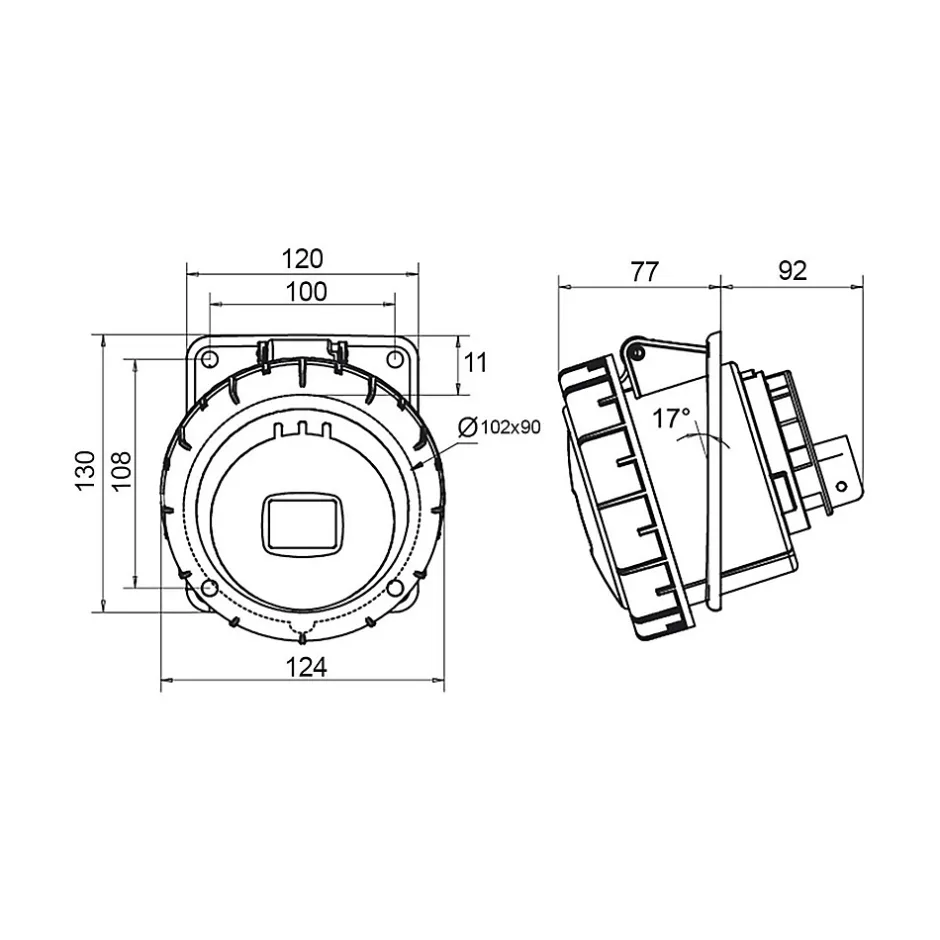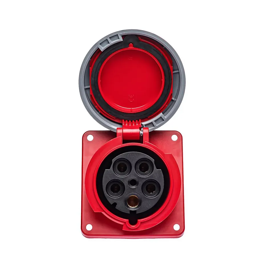 Prise femelle à encastrer tétrapolaire 5x125A – sans fil piloteConçue pour les installations industrielles exigeantes, cette prise femelle possède un certificat d’étanchéité renforcée IP67. Cette prise encastrable 125A fonctionne en tripolaire (3P+N+T) sur une tension de 380V.Le raccordement de cette prise se fait par borne à vis avec une section de câble maximum de 70mm² en câble rigide et 50mm² en câble souple.Cette prise n’intègre pas de fil pilote. Elle reste compatible avec les prises mâles disposant d’un fil pilote mais la fonction contact pilote ne pourra pas être assurée.Sur devis nous pouvons vous câbler un coffret de prise monophasé/triphasé sur mesureL’essentiel sur la Prise femelle à encastrer 380VFabriqué en EspagneQualité professionnellePrise européenne compatible toute marque (Legrand; Schneider…)Vis de fixation en inox à commander séparémentÉtanchéité renforcée IP67