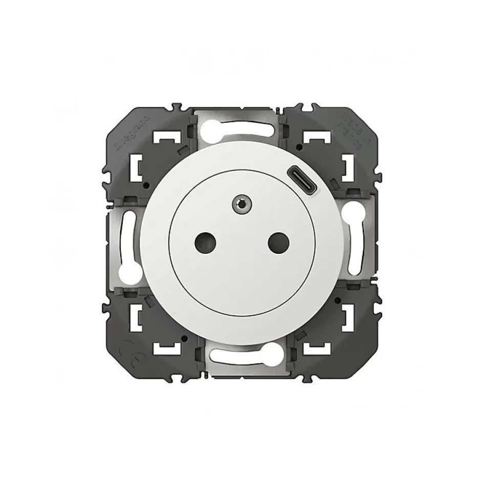 Prise 2 pôles + terre + Prise USB-C Legrand Dooxie blanc carrée