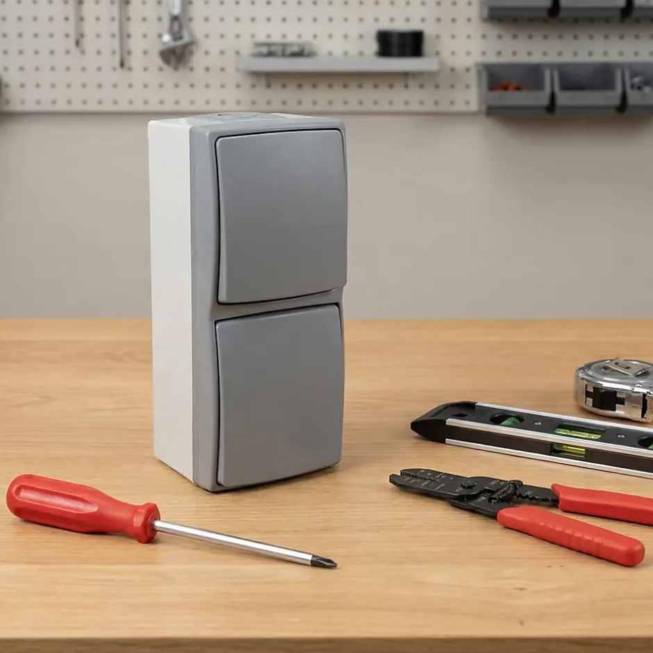 Prise 2 pôle+terre et va-et-vient vertical Diall Mastic