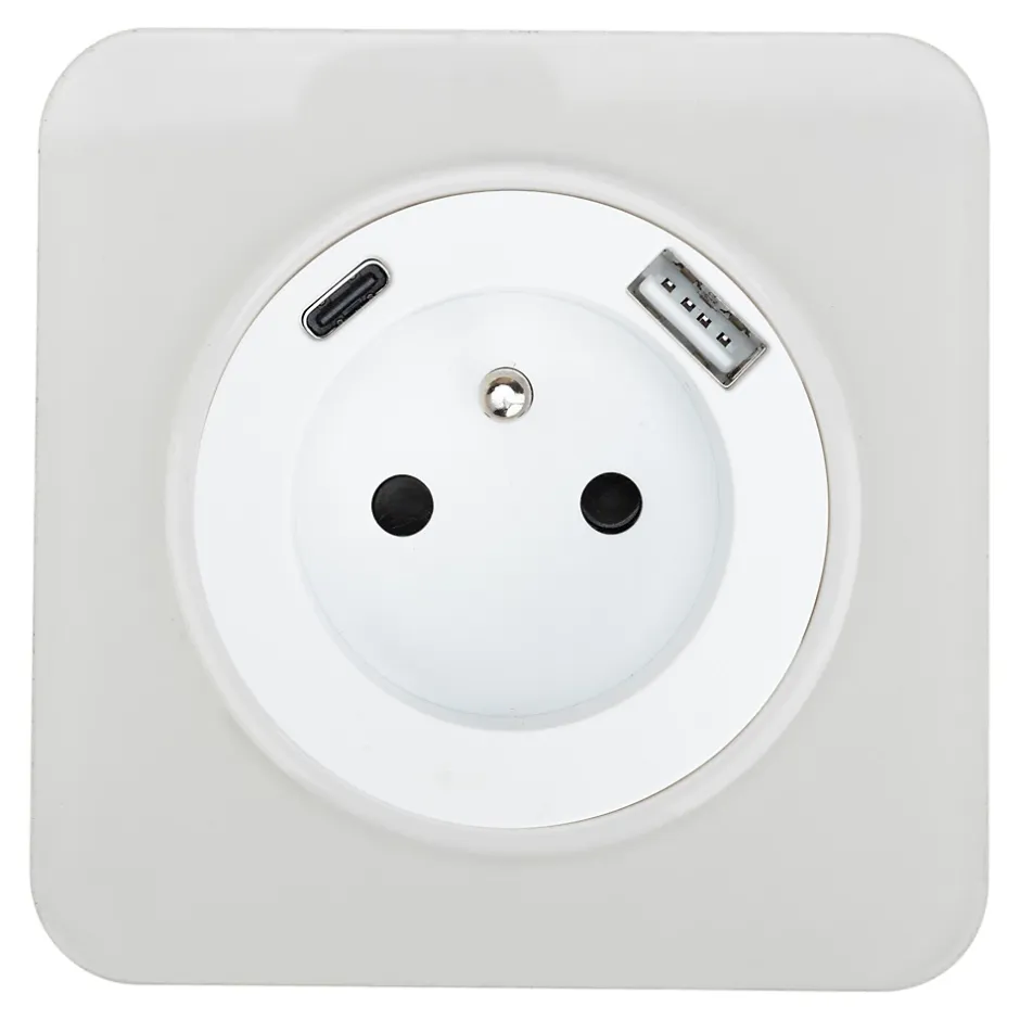 Prise avec terre Jacobsen Espen blanc à composer, 2xUSB-A+C
