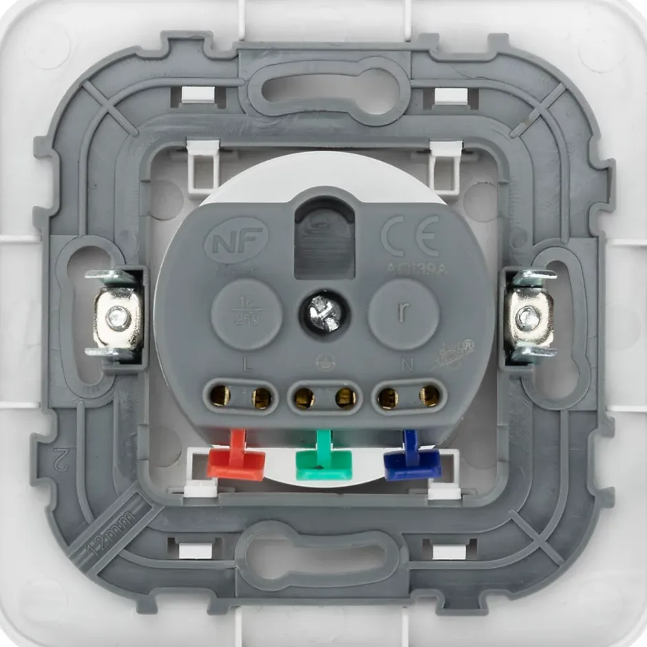 - Griffes et vis : installation à l’aide de griffes et de vis permettant de fixer l’équipement dans des boîtes d’encastrement neuves ou anciennes