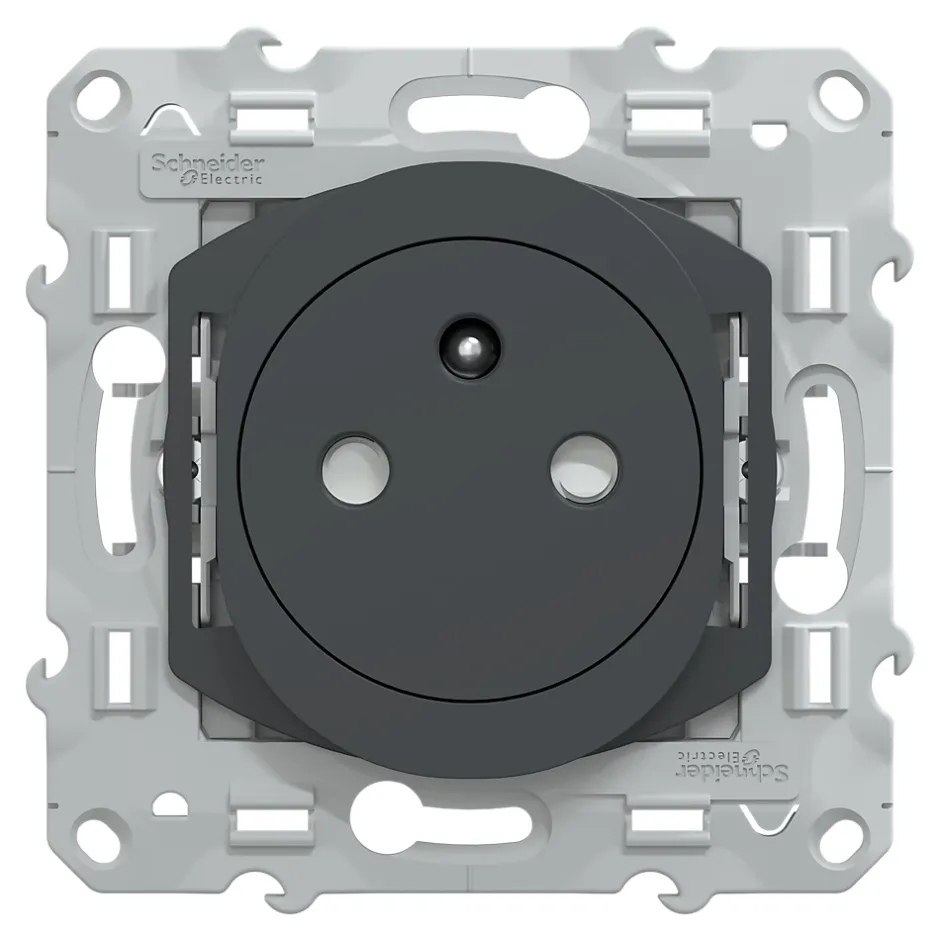 Prise de courant 2 pôles + terre affleurante avec griffes Schneider Electric Ovalis anthracite