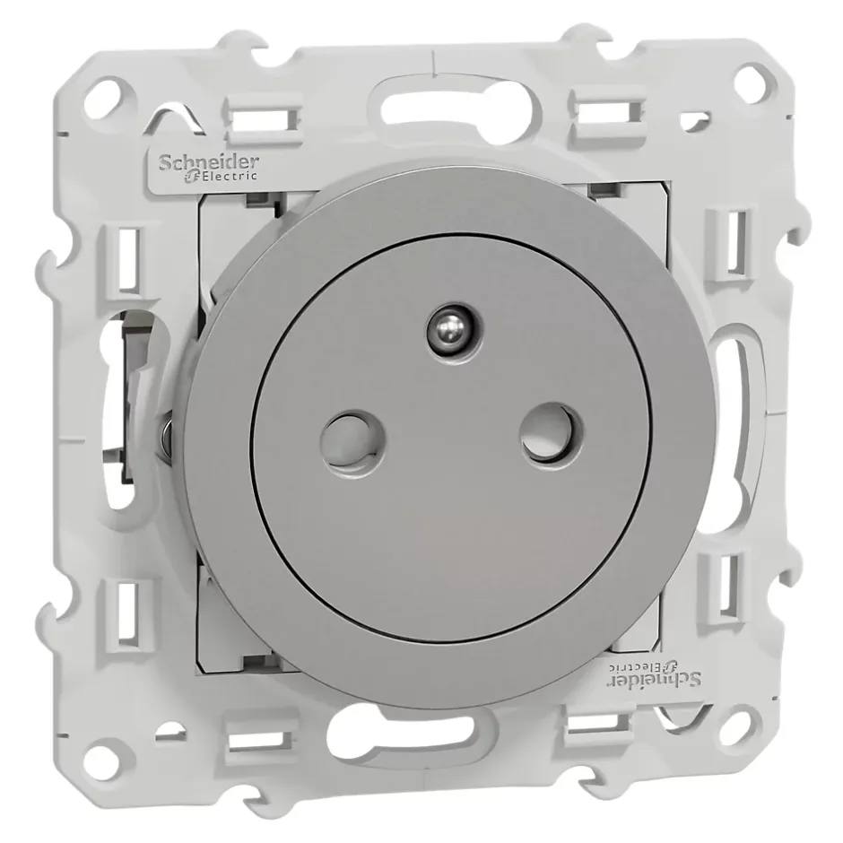 Prise de courant avec terre affleurante 16A Schneider Electric Odace aluminium