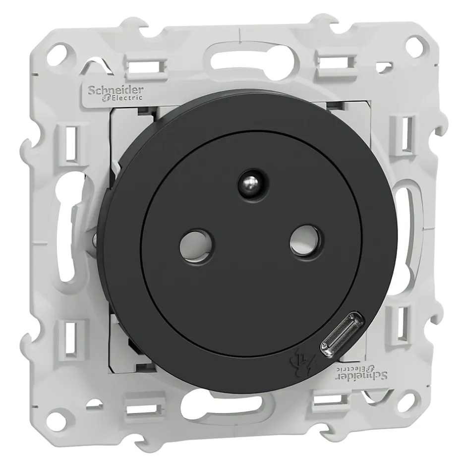 Prise de courant avec terre affleurante + usb C 10.5W Schneider Electric Odace anthracite