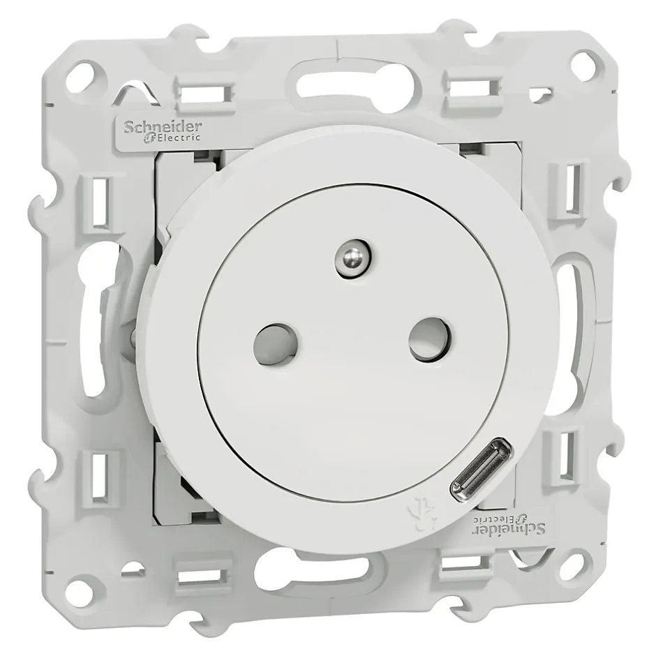 Prise de courant avec terre affleurante + usb C 10.5W Schneider Electric Odace blanc