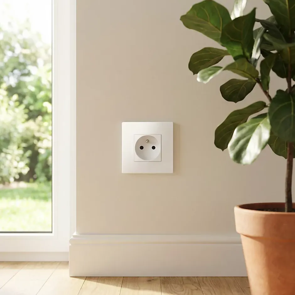 Alimentez tous vos appareils avec cette prise encastrable OPP blanche. Installation facile à l’aide de griffes ou de vis.