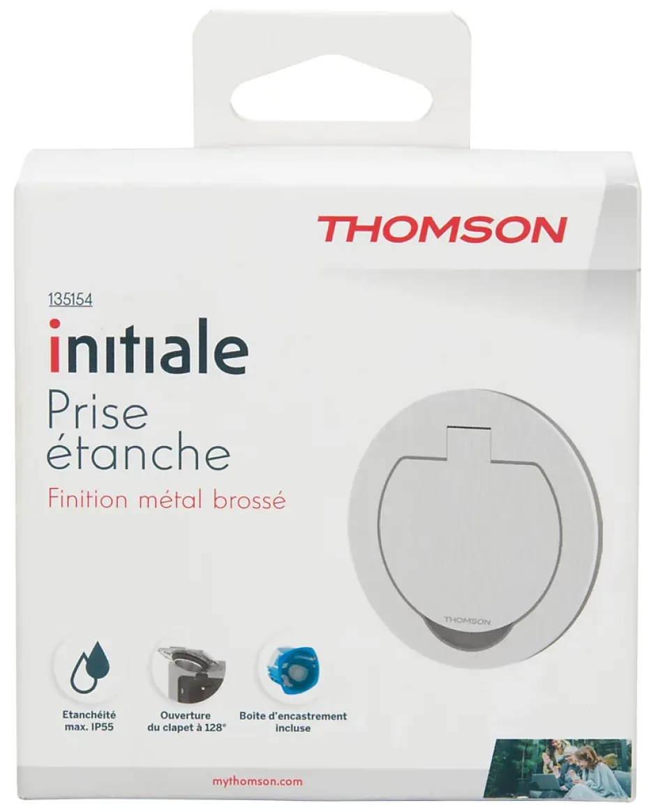 Prise de sol étanche ronde 16A 2 pôles + terre, aluminium brossé IP55, Thomson