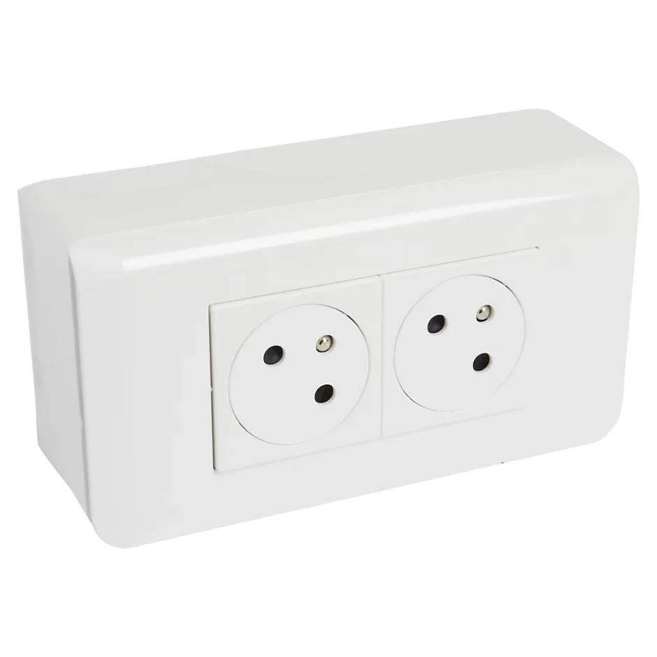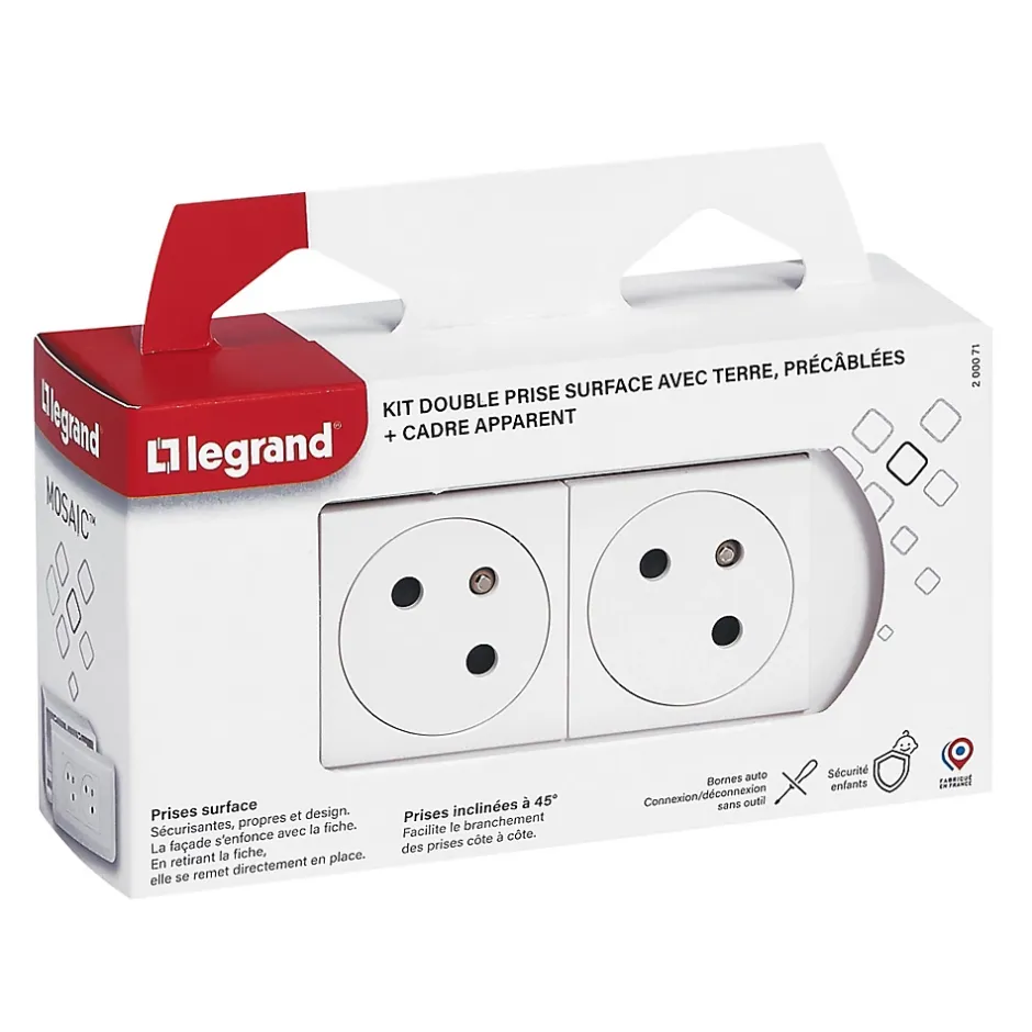 Prise deux pôles + terre Legrand Mosaïc en saillie, lot de 2