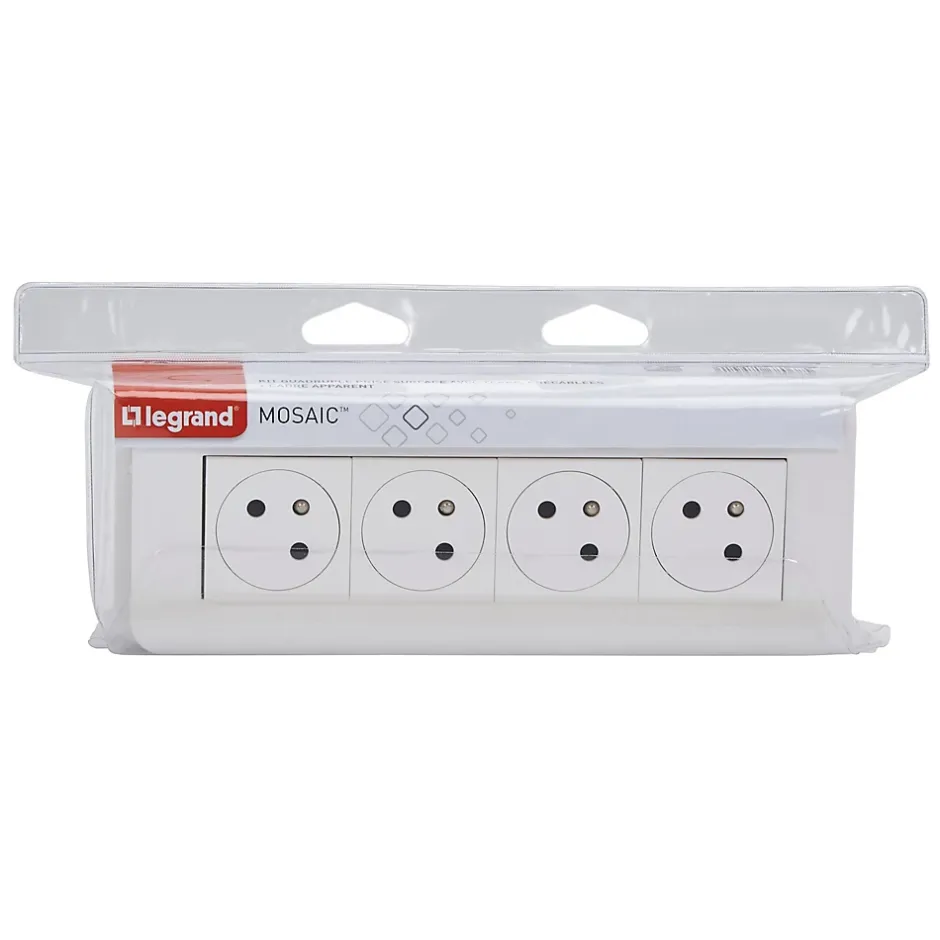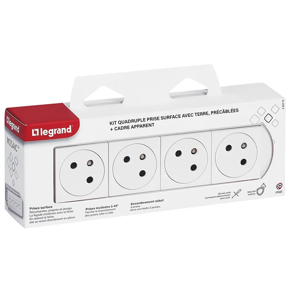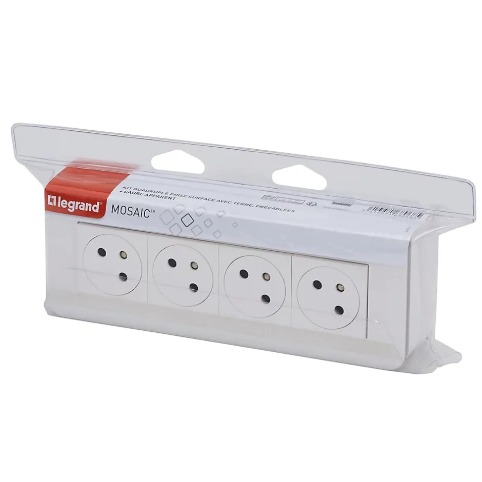 Prise deux pôles + terre Legrand Mosaïc en saillie, lot de 4