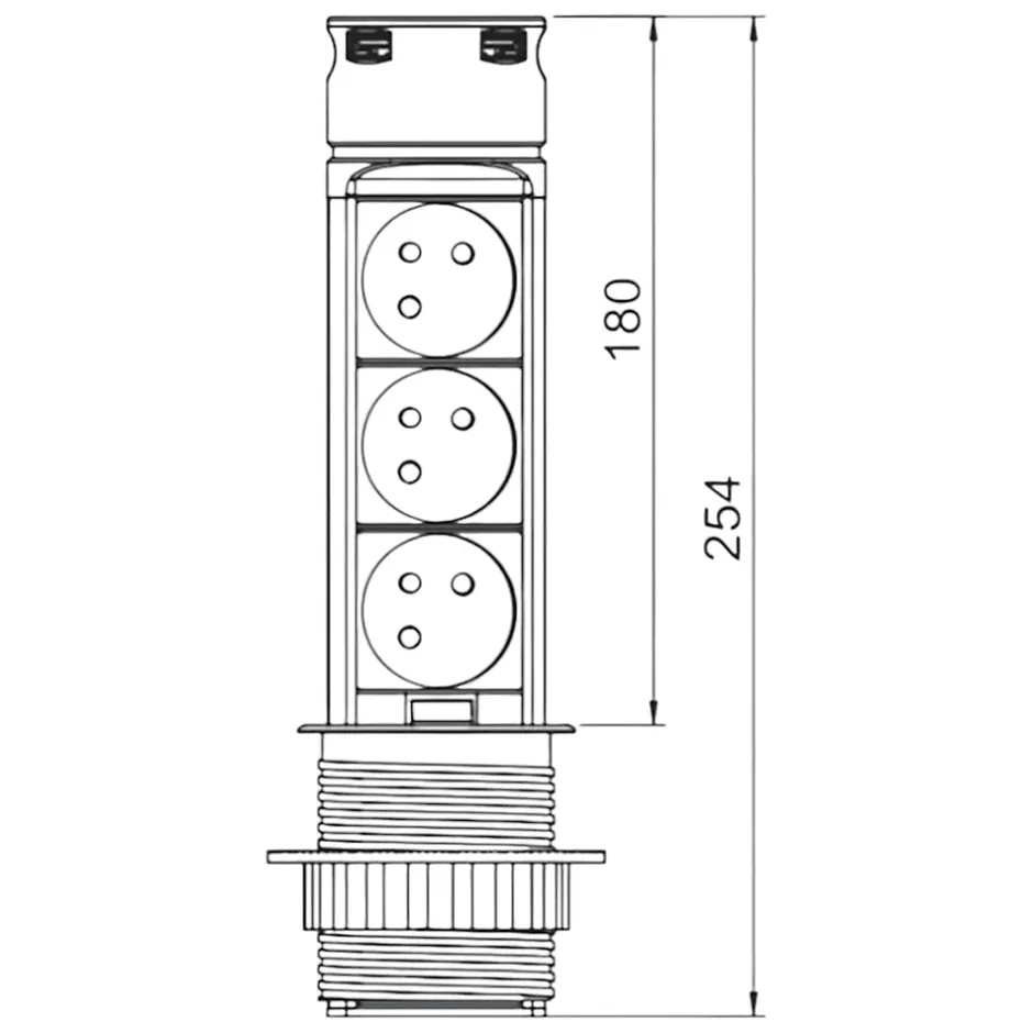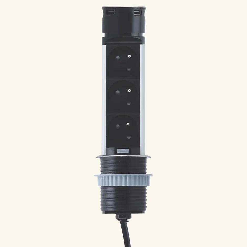 • Multiprise rétractable •• 3 prises •• 2 USB-A•• Prise inox une fois la prise encastrée et fermée