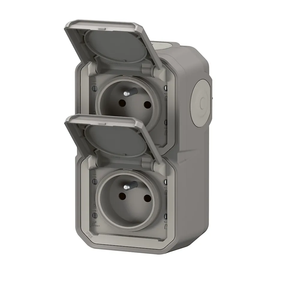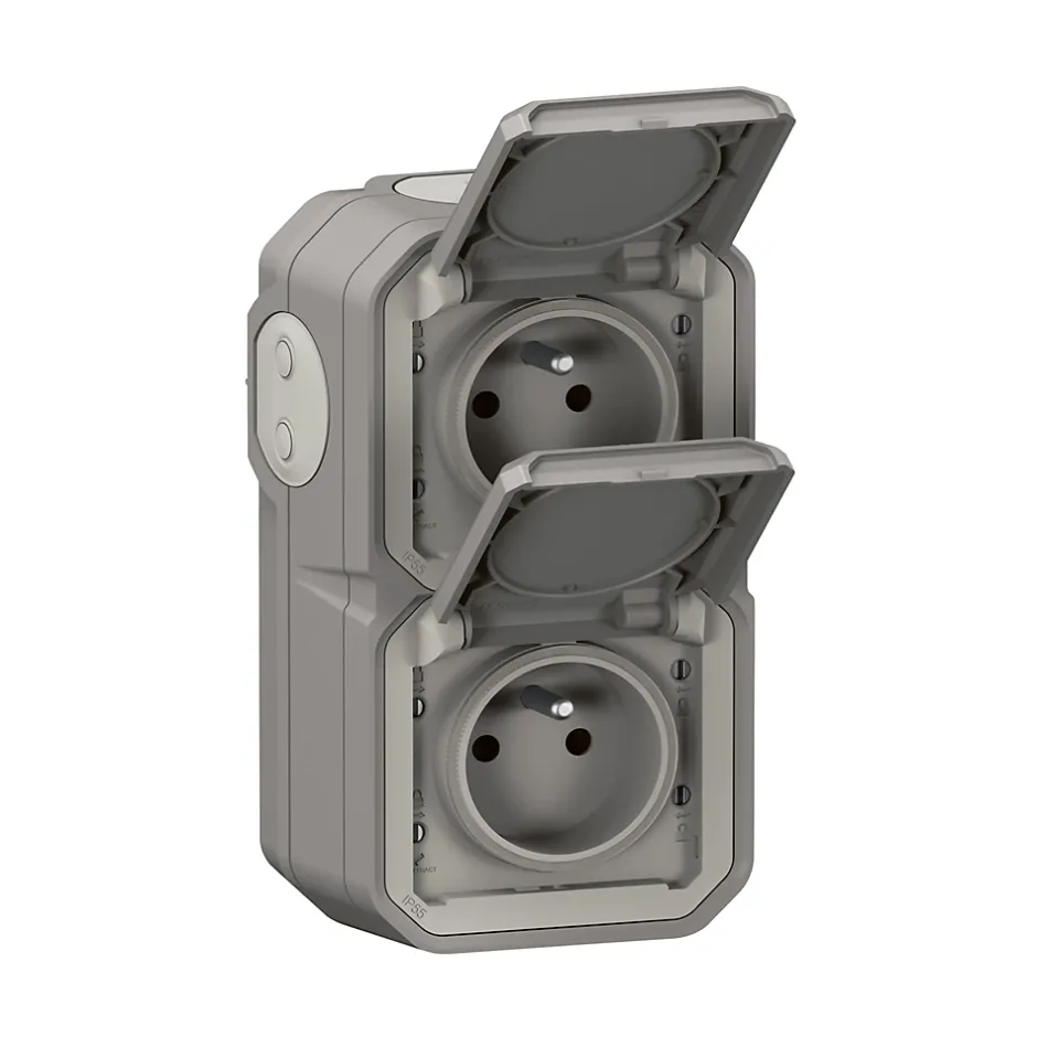 Prise verticale Legrand Plexo gris en saillie, lot de 2
