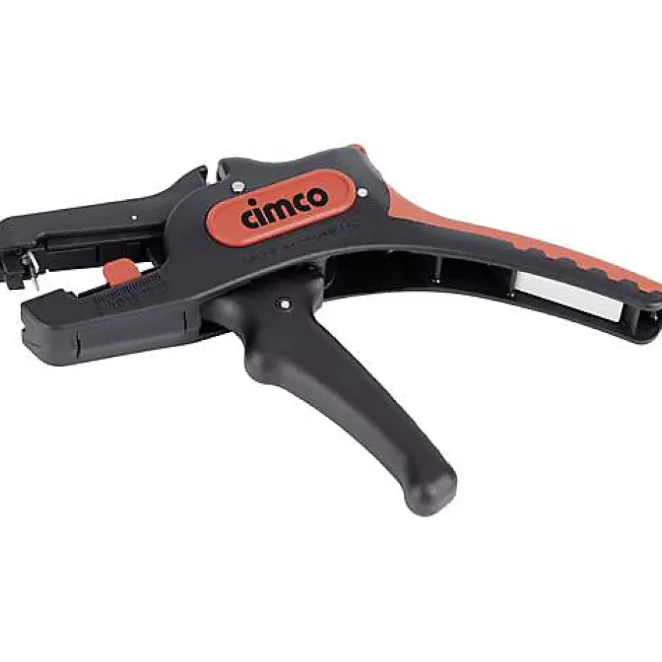Pince à dénuder automatique Cimco PRO-STRIP 16, référence 100776, conçue pour fils souples et massifs de 0,2 à 16 mm² (24–5 AWG). Réglage automatique sur la section du conducteur, pas d’ajustement manuel requis. Butée longitudinale réglable et amovible de 5 à 25 mm pour des longueurs de dénudage précises. Coupe latérale intégrée pour conducteurs cuivre et aluminium jusqu’à 3 mm de diamètre maximum. Lame intérieure remplaçable, poignée bimatière ergonomique avec verrouillage, œillet pour passage de bande. Matière : polyamide renforcé en fibre de verre, longueur 160 mm, poids 140 g. Garantie fabricant 2 ans.