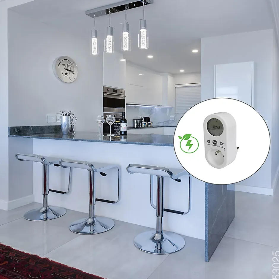 Caractéristiques du programmateur digital avec grand écran LCD – Chacon :Modèle : programmateur digitalCouleur(s) : blancType de prise : FRAlimentation : secteurTension : 220–240 V CAPuissance maximale : 1800 WIndice de protection : IP20Nombre de programmes : 42 cycles On/OffModes de programmation : jour, groupe de jours, week-end, tous les joursFonction sauvegarde et aléatoireLes piles sont fourniesGrand LCD pour lecture facileLe programmateur digital avec grand LCD vous permet de simuler une présence dans votre maison et de programmer vos appareils électriques pour un allumage et une extinction automatique aux heures souhaitéesGrâce à son écran LCD lisible, ses 42 programmes configurables et sa fonction de sauvegarde en cas de coupure d’alimentation, il assure une utilisation simple et sécurisée. Idéal pour économiser de l’énergie, sécuriser votre habitation et gérer vos appareils de manière efficace et pratique.