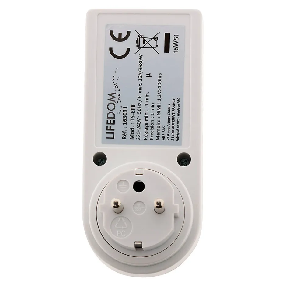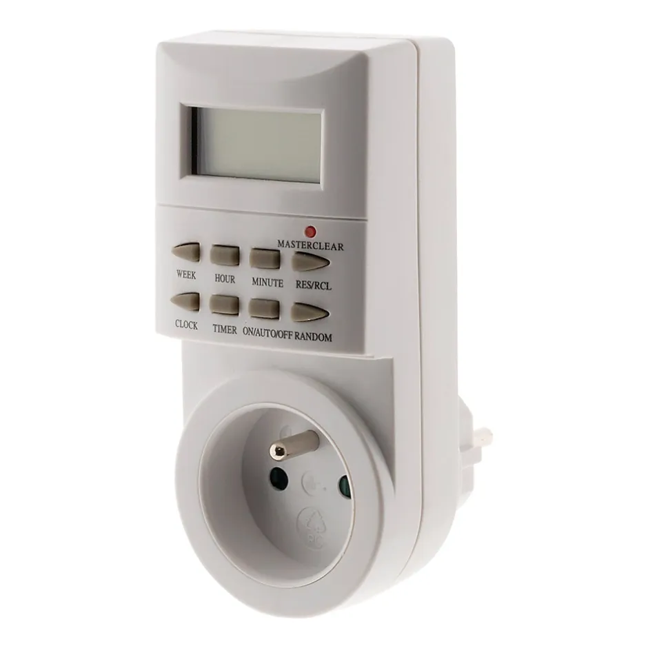 Caractéristiques du programmateur hebdomadaire digital – Otio :Modèle : programmateur heddomadaire digital49 programmes simples disponibles pour tous types d’appareils électriques1 à 8 cycles marche/arrêt hebdomadaires personnalisablesPuissance maximale : 3680W sous 230VFonction déclenchement aléatoire pour plus de sécurité et d’efficacitéProgrammation à la minute près pour une précision optimale 16 options différentes de déclenchement des cyclesÉcran digital clair et facile à utiliserCompatible avec la plupart des appareils électriques domestiquesDesign compact et ergonomiqueLe programmateur hebdomadaire digital offre une flexibilité exceptionnelle grâce à ses 49 programmes simples et ses 16 options de déclenchement, permettant une gestion précise de vos appareils électriques !Sa programmation à la minute près garantit un contrôle optimal, tandis que la fonction de déclenchement aléatoire augmente la sécurité en simulant une présence. Facile à utiliser et compatible avec une grande variété d’appareils, il est idéal pour réduire votre consommation énergétique et automatiser votre quotidien.