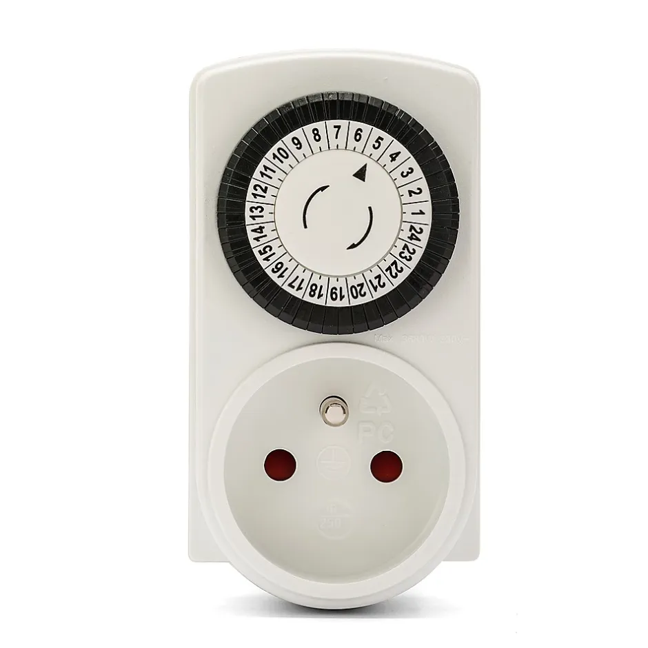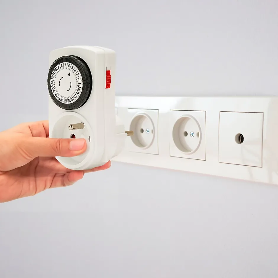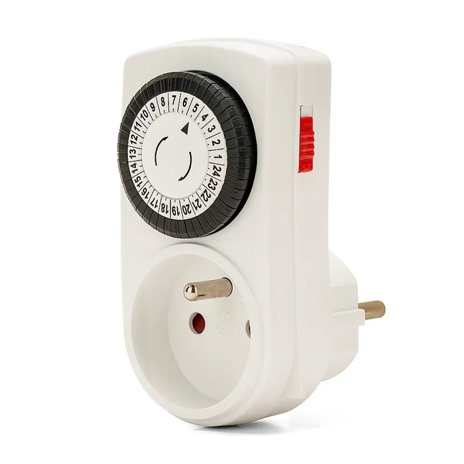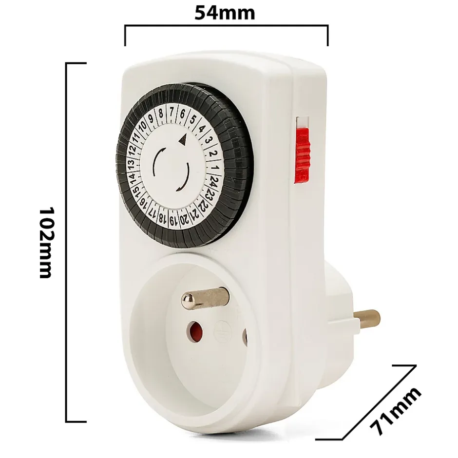 Économisez de l’énergie et de l’argent en éteignant automatiquement vos appareils plutôt que de les laisser en veille durant les heures d’inutilisation. Mini programmateur journalier 24h segments 30 minutes. Prise française 16A avec terre. 230V~ 3500W maxi. Idéal pour les appareils domestiques. Convient parfaitement pour éteindre automatiquement les guirlandes de Noël, TV, aquarium, les lampes, ventilateur etc. économisant ainsi de l’énergie. La minuterie mécanique est facile à utiliser. Son réglage simple (ON/OFF) peut être utilisé jusqu’à 48x par jour avec 30 minutes d´intervalles. L’activité programmée s´arrête grâce à un interrupteur intégré Utilisation à l’intérieur uniquement.