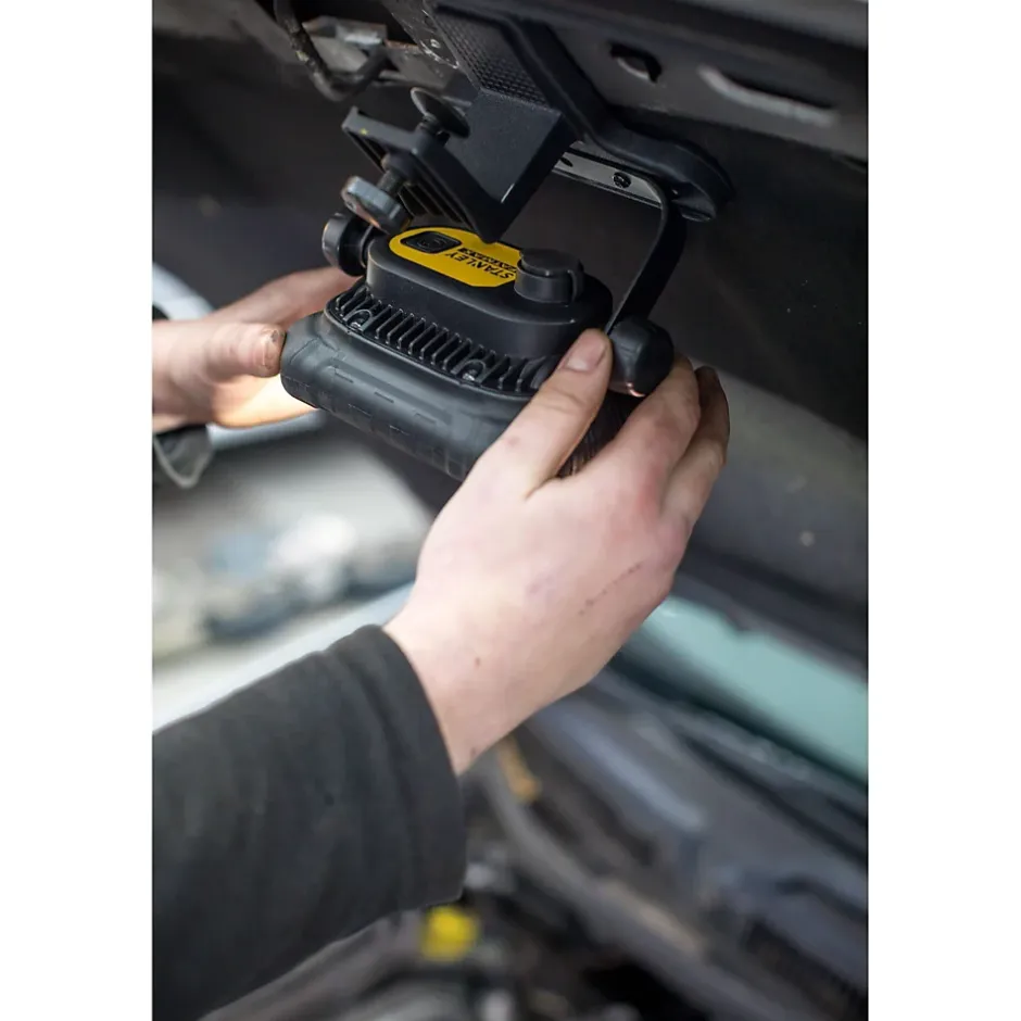 LED COB pour davantage de luminosité Fonctionne avec ou sans fil pour plus de liberté 2 modes de puissance : normal (500 lumens) et boost (1000 lumens) Autonomie de 4 à 8 heures IP 67 pour davantage de résistance dans les environnements les plus extrêmes Rotation à 180 degrés, base aimantée sur 3 points ou effet serre-joint pour fixation sur support (type poutre…) pour s’adapter à votre environnement de travail