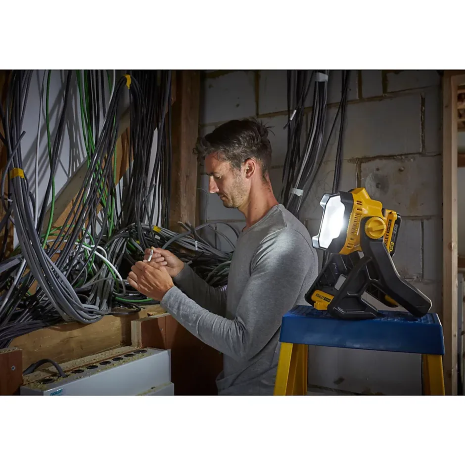 PLATEFORME SANS FIL 18V STANLEY® FATMAX® V20 : Une batterie pour tous vos outils de bricolage et d’entretien des espaces extérieurs. Cette lampe projecteur SFMCL030B-XJ est idéale pour les personnes qui travaillent dans des zones mal éclairées, sur des chantiers sans alimentation électrique ou pour des activités extérieures de nuit. Elle est équipée d’une puissance lumineuse réglable de 750 à 1825 lumens pour s’adapter à tous les besoins. La lampe projecteur V20 est dotée d’une tête pivotante pour éclairer facilement toutes les zones de travail. Elle est également équipée de pieds intégrés pour une utilisation stable et robuste. Elle peut également être fixée sur un trépied 4/3 pour s’adapter à toutes les zones de travail. Le produit est issu de la gamme V20 de STANLEY FATMAX, garantissant ainsi une qualité de fabrication supérieure. Elle fonctionne avec une batterie de 18V de la gamme V20, qui n’est pas fournie, mais elle peut également être branchée sur secteur pour une utilisation prolongée. Le produit est garanti 2 ans (+ 1 an sur simple inscription : stanleyoutillage.fr, rubrique MYSTANLEY dans les 28 jours suivants son achat).