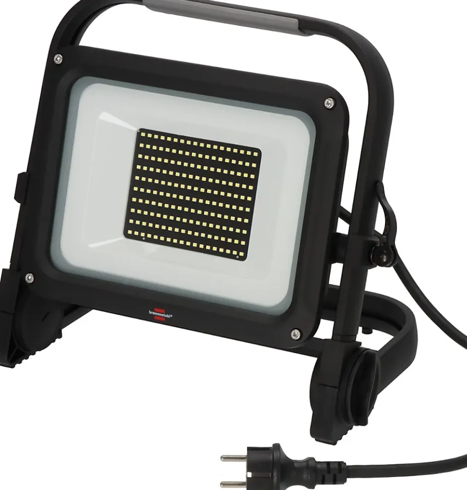 Projecteur de chantier LED portable JARO 14060 M idéal pour l’extérieur et les travaux de bricolage. Puissance 100 W et flux lumineux 11 500 lm, température de couleur 6500K. Indices de protection IP65 et IK08 pour résistance aux intempéries et aux chocs. Boîtier en métal (aluminium robuste) avec support en acier muni d’angles de protection et perçages pour montage sur trépied. Interrupteur marche/arrêt avec 3 modes d’éclairage (100 % / 50 % / 25 %). Câble H07RN-F 3G1,0 en néoprène de 5 m, vitre frontale en verre de sécurité. Classe de protection I, tension nominale 220–240 V, fréquence 50/60 Hz. Dimensions : hauteur 35 cm, longueur 9,50 cm, largeur 37 cm; poids 3,23 kg.