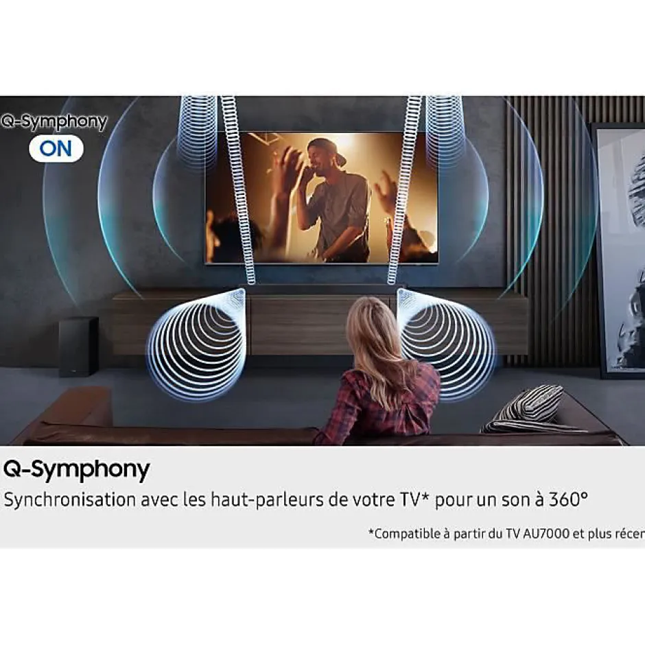- Q-Symphony, SpaceFit Sound Pro et Adaptive Sound pour optimisation automatique et synchronisation TV + barre