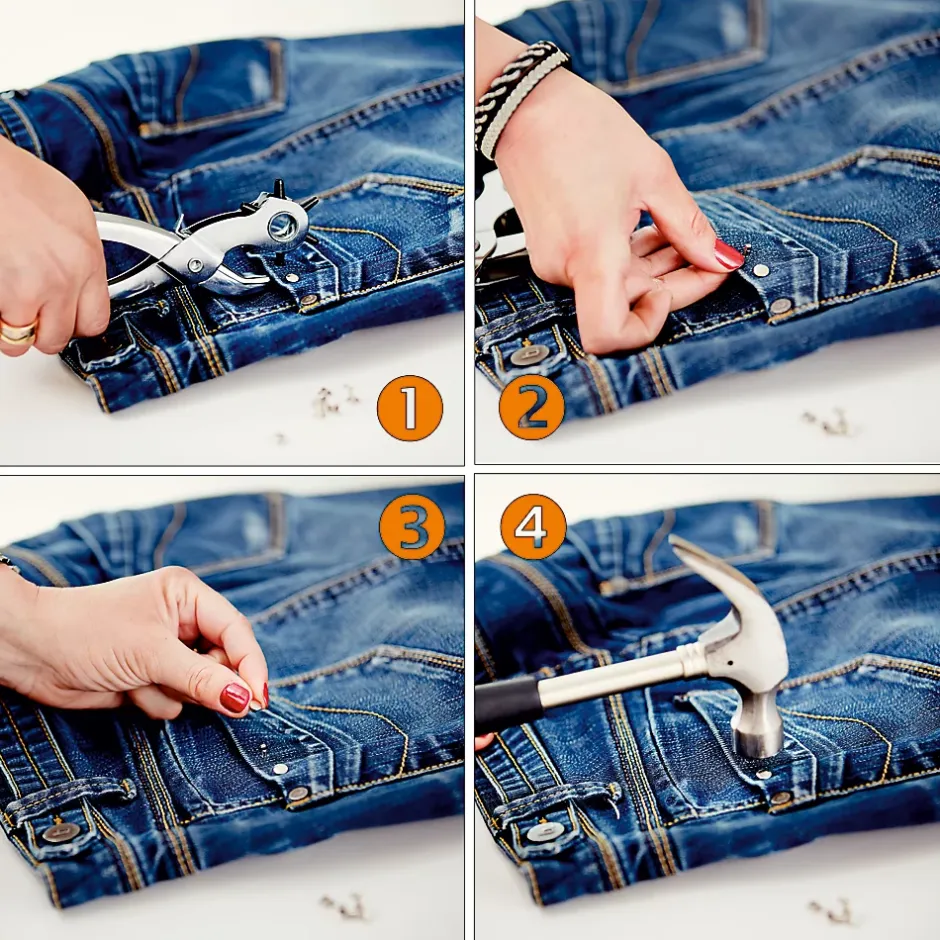 Ces rivets tubulaires sont parfaits pour de nombreuses applications sur le textile comme la customisation de jeans, la réparation de poches de pantalons ou des ceintures, ou tout autre type de fixation sur le textile ou le cuir.
