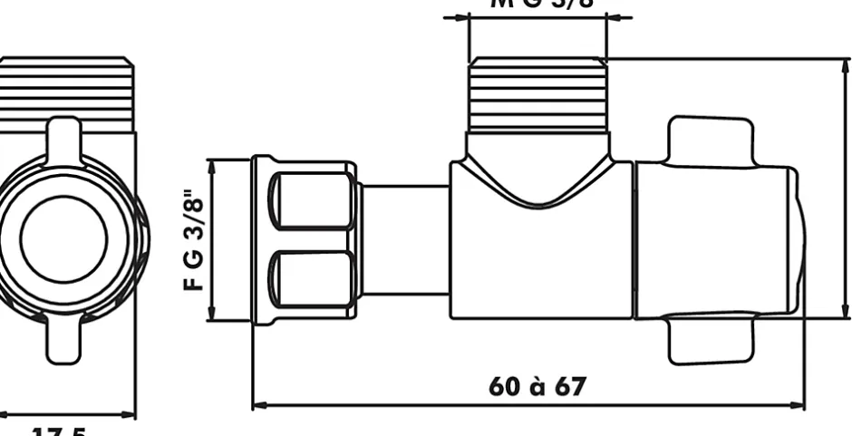 Robinet d’arrêt équerre de chasse WC. – Entrée Mâle 3/8″ – Sortie Ecrou tournant 3/8″. – Man½uvre facilitée par poignée 1/4 de tour. – Corps en laiton chromé pour une excellente fiabilité et une finition soignée valorisante. – Etanchéité assurée par joint plat en EPDM fourni.