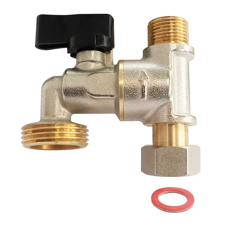 Robinet de piquage pour machine à laver – Entrée écrou tournant et sortie mâle 12/17 (3/8″) – Repiquage mâle 20/27 (3/4″)