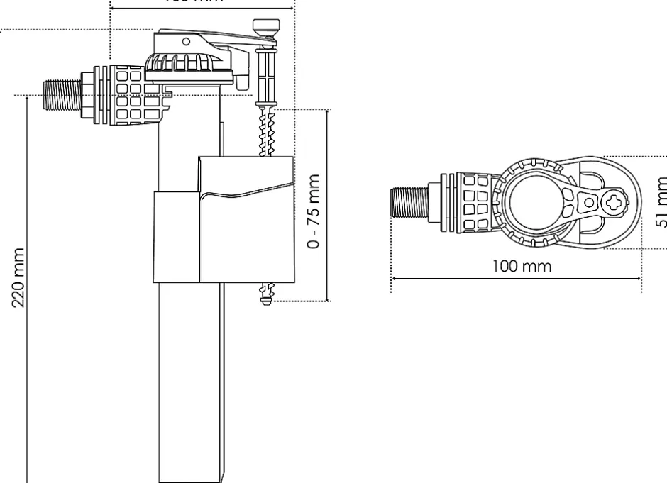 - Veiller à choisir le robinet flotteur en fonction du type d’alimentation en eau du réservoir (alimentation basse ou latérale).