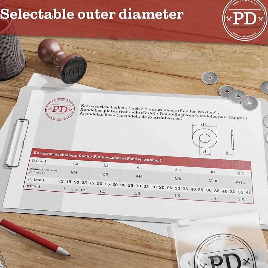 Decouvrez ce lot de 25 rondelles plates concu par PD. parfait pour les travaux de fixation et la carrosserie. Fabriquees en acier inoxydable A2 de haute qualite. ces rondelles offrent une excellente resistance a la corrosion. assurant durabilite et fiabilite dans les environnements humides ou en exterieur. Leur robustesse garantit un maintien optimal pour vos vis et boulons filetes. evitant tout endommagement des surfaces et maintenant solidement lassemblage de vos structures. quil sagisse de projets de construction. damenagement ou de reparations courantes. Avec un diametre exterieur de D40 mm. un diametre interieur adapte au filetage M8 et une epaisseur de 1.5 mm. elles conviennent aux besoins les plus exigeants pour assurer la repartition des charges et proteger les pieces assemblees. Le format standardise des dimensions permet une compatibilite parfaite avec la majorite des vis et boulons M8. tandis que la surface en finition brossee apporte une touche soignee a lensemble. Les rondelles PD sont polyvalentes et sutilisent aussi bien a linterieur qua lexterieur. dans le jardin. sur un chantier ou a latelier. Leur forme ronde et leur type plate les rendent ideales pour de multiples applications en carrosserie ou bricolage. Optez pour la fiabilite dun accessoire signe PD. pour tous vos assemblages necessitant qualite. resistance et facilite dutilisation.