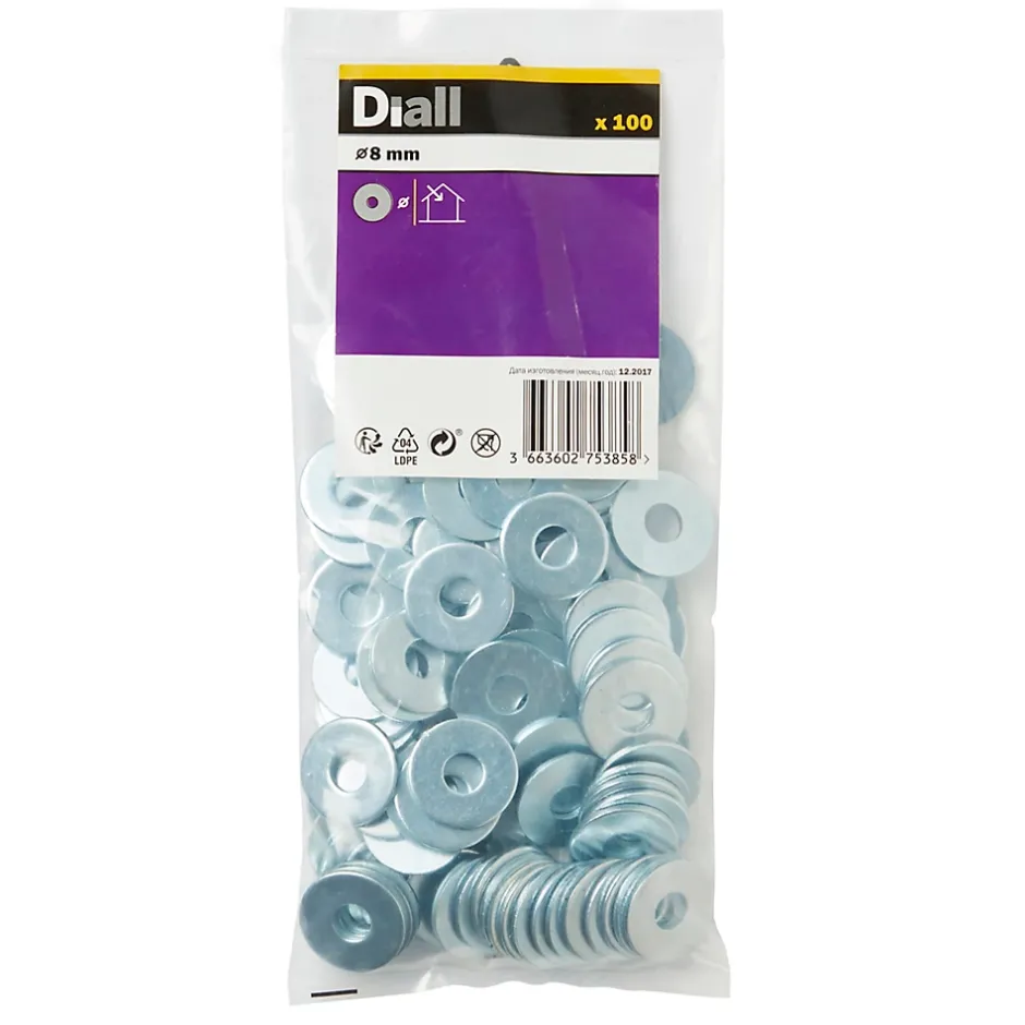 Les 100 rondelles plates larges de ce pack sont fabriquées à partir d’acier au carbone. Elles ont un diamètre M8. Elles sont idéales pour tout un éventail de projets de bricolage.