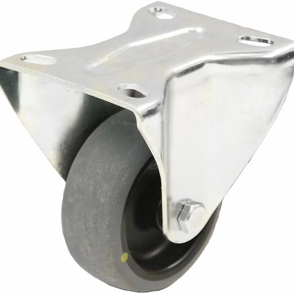 Roulette fixe zinguée avec support de plaque supérieure en acier embouti.Roue en caoutchouc thermoplastique (TPR) gris conducteur d’électricité, lié chimiquement à un centre en polypropylène. Dureté de la bande de roulement : 85° Shore A. Résistance aux fuites <10°.Axe de roue boulonné.Faible résistance au roulement et faible bruit de fonctionnement. Bonne protection des sols et non marquant, mais le caoutchouc TPR contient des traces d’huile et peut tacher les sols absorbants.Bonne résistance chimique, sauf aux huiles.