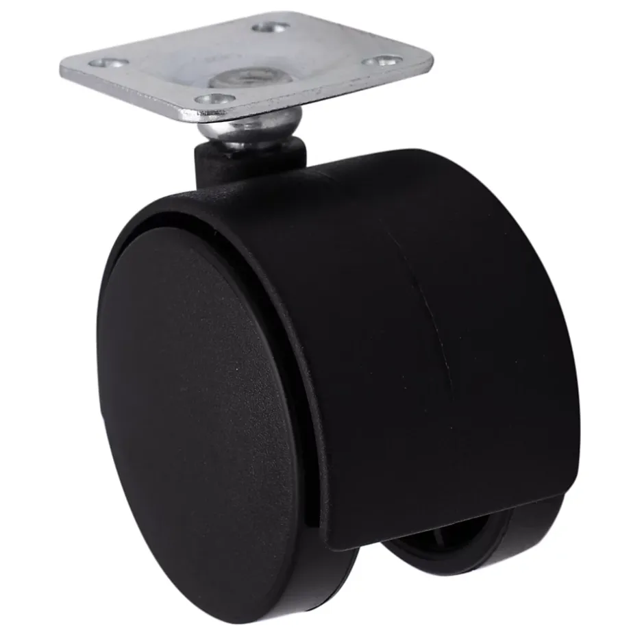 Roulette jumelée pivotante sans frein ø50 mm, plaque 38 x 38 mm, charge max 40 kg