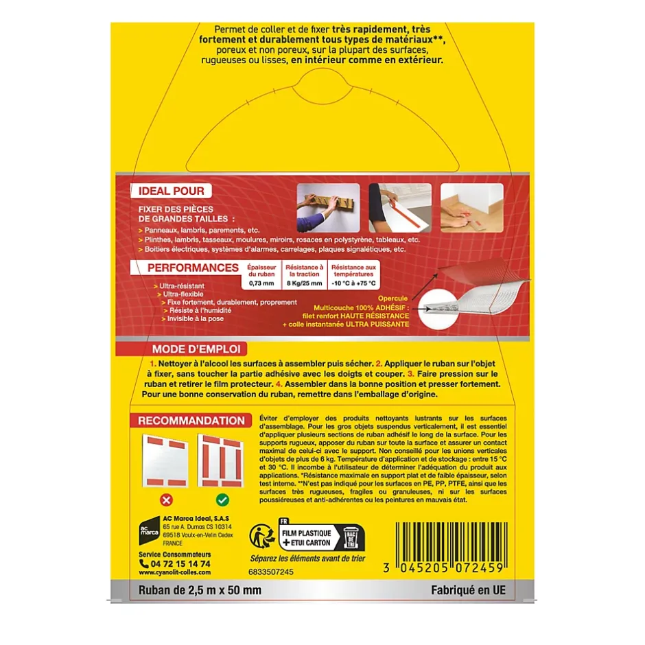 - Colle de nouvelle génération appliquée sur chaque face d’un ruban renforcé.