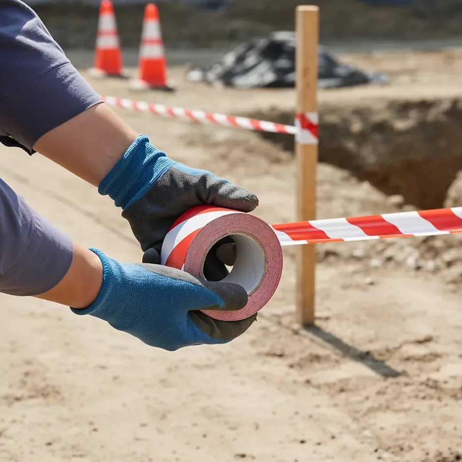 Ruban de chantier longueur 100 m largeur 50 mm, coloris rouge/blanc.Pour une délimitation temporaire.