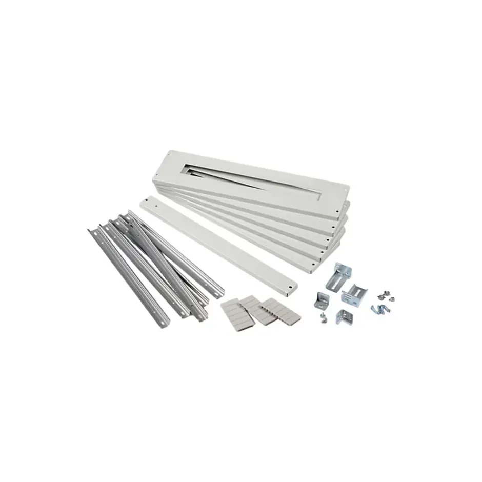 Kit rail DIN + plastron en métal pour coffret Atlantic IDE de hauteur modulaire 1250mmCe kit rail DIN + Plastron est compatible avec le coffret référence : 65SUP144192 ou 40ENL144192 de la gamme Atlantic IDE.Ce kit est composé de :8 plastrons modulaires de 150mm avec une capacité de 24 modules de 18mm1 plastron plein de 50mm8 rails DINLot d’obturateurs 6 modules fractionnablesUne fois installé, ce kit vous permettra d’installer 192 modules dans votre coffret électrique. l’ensemble occupe 1250mm de hauteur modulaire dans votre coffret.
