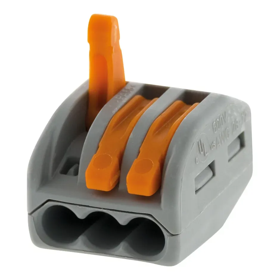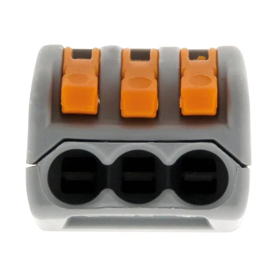 Caractéristiques de la borne à levier pour fil rigide, semi-rigide et souple 0,08-4 mm² – WagoModèle : borne à levier pour fils rigides, semi-rigides et souplesSérie 222Section des fils pris en charge : 0,08 mm² à 4 mm²Tension de référence : 400 VCourant nominal : 32 ALongueur de dénudage recommandée : 9 à 10 mmDisponible en 2/3/5 entréesEn sachet de 5 ou 10La borne à levier pour fils rigides, semi-rigides et souples est une solution idéale pour des connexions électriques rapides et sécurisées.Elle est compatible avec des fils allant de 0,08 mm² à 4 mm², offrant une grande flexibilité pour une variété d’applications. Avec une tension de référence de 400 V et un courant nominal de 32 A, cette borne garantit une haute performance et une sécurité accrue.La longueur de dénudage recommandée de 9 à 10 mm permet une connexion stable et optimisée. Disponible en versions 2, 3 ou 5 entrées, cette borne s’adapte à différents besoins de câblage, que ce soit pour des installations complexes ou simples. Fournie en sachets de 5 ou 10 unités, elle est idéale pour les professionnels et les bricoleurs, offrant à la fois praticité, économie et fiabilité.