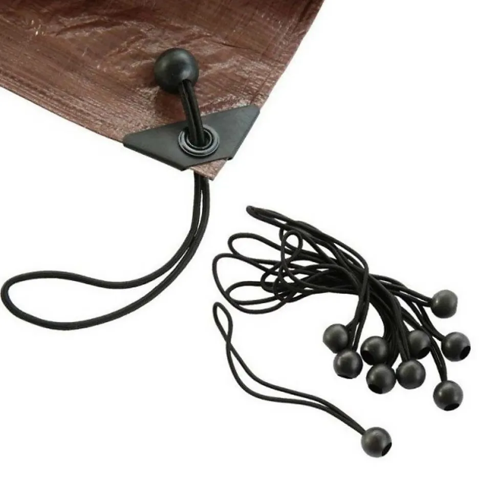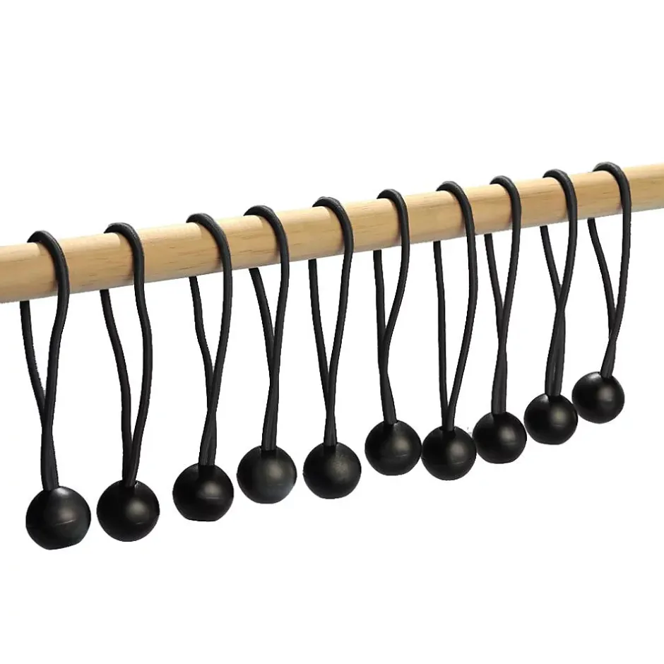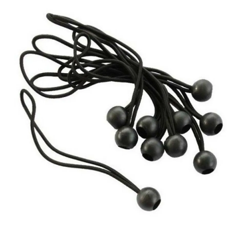 Sandow élastique pour bâche avec attache rapide – Vendu par 10Lot de 10 sandows pratiques pour arrimer ou fixer tous types de bâches, tout en gardant des accès partiels à tout moment. Ces sandows sont dits « express » car ils disposent d’une attache rapide élastique avec boule de blocage. Ce lot de sandow avec boules de blocage en plastique est idéal pour le maintien de vos bâches de protection. Informations techniquesMatières : plastique et polyesterDimensions :diamètre de l’élastique : 4 mmlongueur max du sandow : 45 cmlongueur de l’attache : environ 22 cm, boule de blocage compriseboule de blocage : diamètre 2. 5 cmPoids : environ 0. 500 kgColoris : noir.