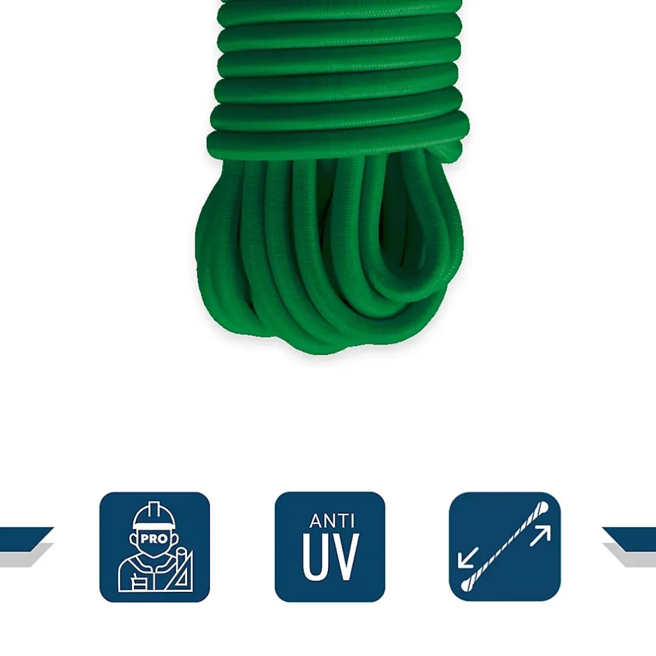 Le sandow élastique vert est un produit de qualité professionnelle. Avec son épaisseur de 9 mm et les matériaux choisis pour sa conception, il bénéficie d’une belle résistance.Fixez vos bâches rapidement et facilement grâce à ce sandow. Il vous permettra un maintien sûr et durable de vos bâches. Nous vous proposons ce sandow d’une longueur de 15 mètres.