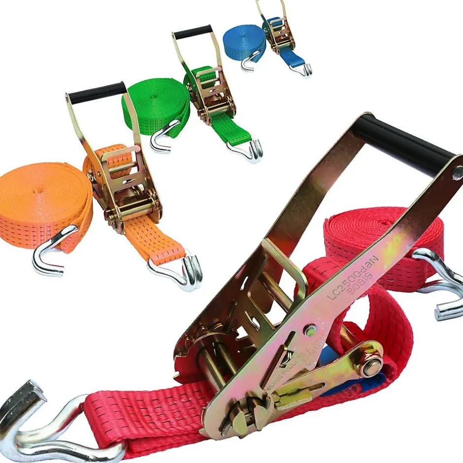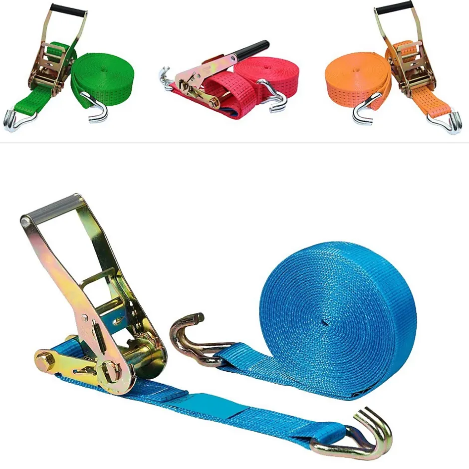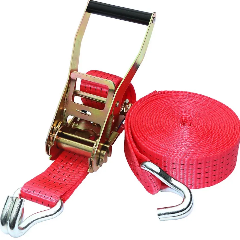 Sangle d’arrimage avec tendeur à cliquet. Plusieurs longueurs et charges supportées au choix. Couleur aléatoire selon arrivage. CARACTÉRISTIQUES : Sangle d’arrimage haute résistance adaptée au transport de charges lourdes pour les particuliers et les professionnels. Contient une sangle et un tendeur à cliquet. À noter : La couleur est aléatoire selon l’arrivage et les stocks disponibles. Votre sangle pourra donc être rouge, orange, bleue ou verte. La couleur de la sangle et celle du tendeur seront cependant identiques. CARACTÉRISTIQUES TECHNIQUES : Composition : PES (polyester). Crochets à griffe double fermée. Conforme à la norme européenne EN 12195-2. Charge supportée 2 tonnes : Longueur au choix : 4, 6, 8, 10 ou 12 mètres. Largeur de la sangle : 35 mm. Résistance traction/levage : 1 019 kg (1000 daN). Résistance arrimage : 2 039 kg (2000 daN). Étirable : Charge supportée 5 tonnes : Longueur au choix : 6, 8, 10 ou 12 mètres. Largeur de la sangle : 50 mm. Résistance traction/levage : 3 059 kg (3000 daN). Résistance arrimage : 2 549 kg (2500 daN). Étirable : À NOTER : pas de livraison en Corse ou sur les îles.