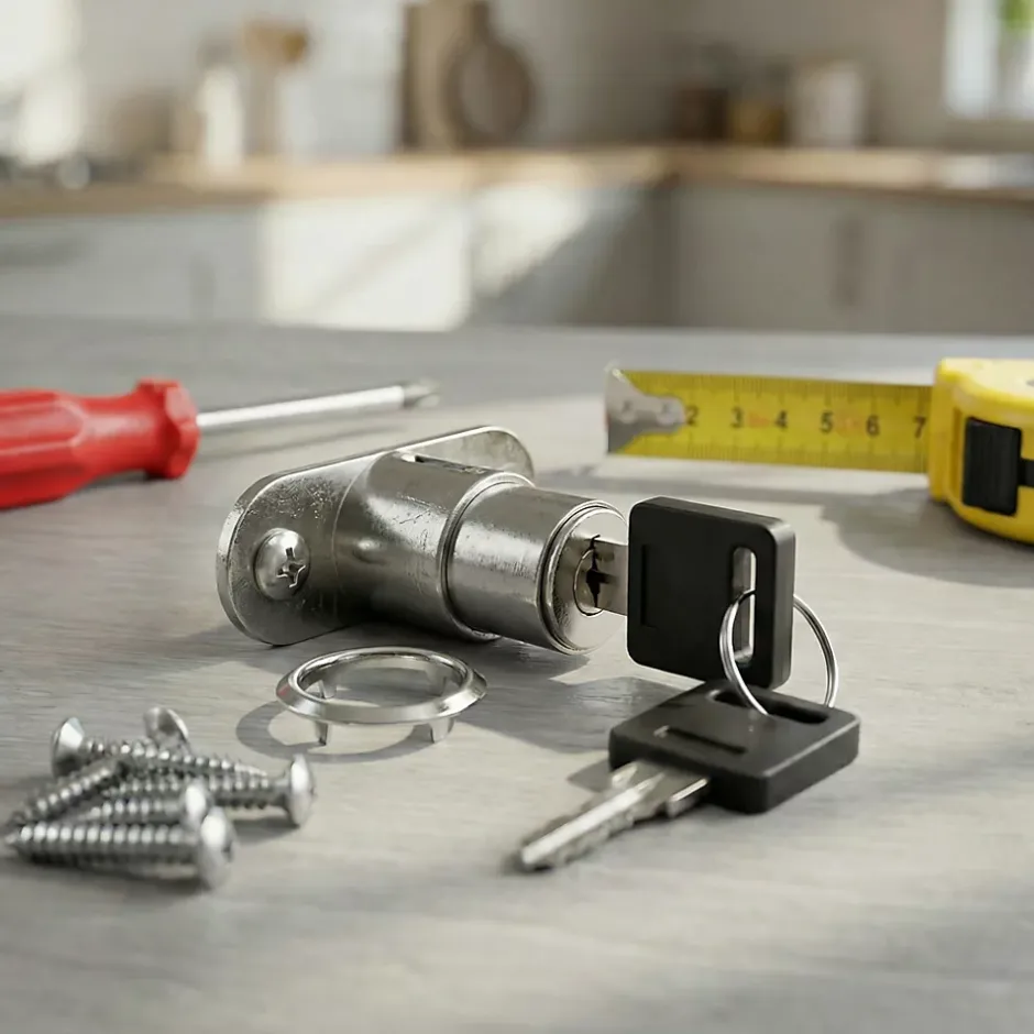 Serrure à cylindre l. 40 mm x H. 35 mm x EP. 7 mm